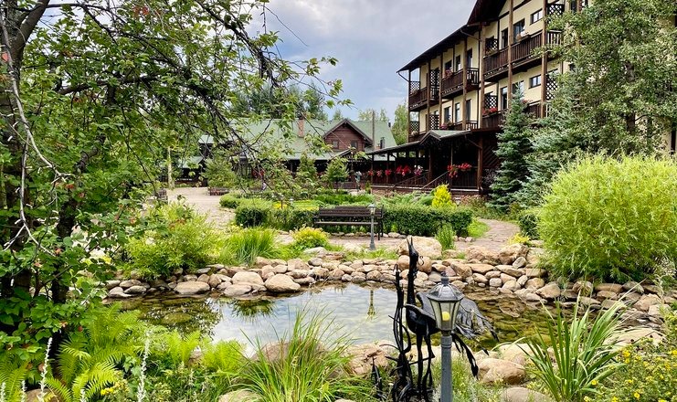 Отельный комплекс включает в себя три современных экологичных корпуса, выдержанных в альпийском стиле: трехэтажный Шале, трехэтажный Фентези и двухэтажный Аллегро, а также отдельно стоящий двухэтажный коттедж, рассчитанный на 6 человек. Территория вокруг облагорожена: проложены аллеи, установлены фонтанчики, в темное врем суток включается красивая подсветка. Гости могут разместиться в комфортабельных современных номерах, среди которых встречаются и апартаменты с кухней.
