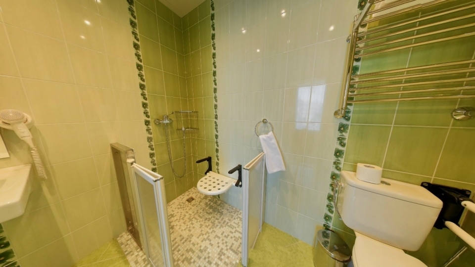 Оснащение номера: две односпальной кровати, кресло-кровать, фригобар, телевизор, сейф, фен, набор посуды: 2 стакана, ваза для фруктов, поднос, wi-fi