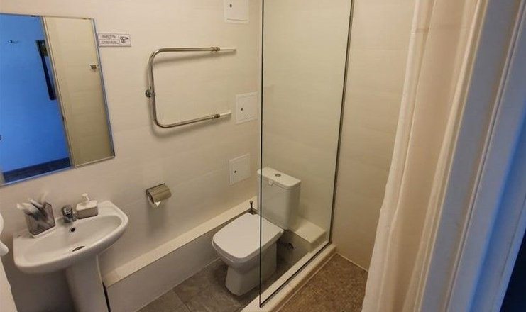 Санузел: с душевой кабиной, тапочки, туалетные принадлежности