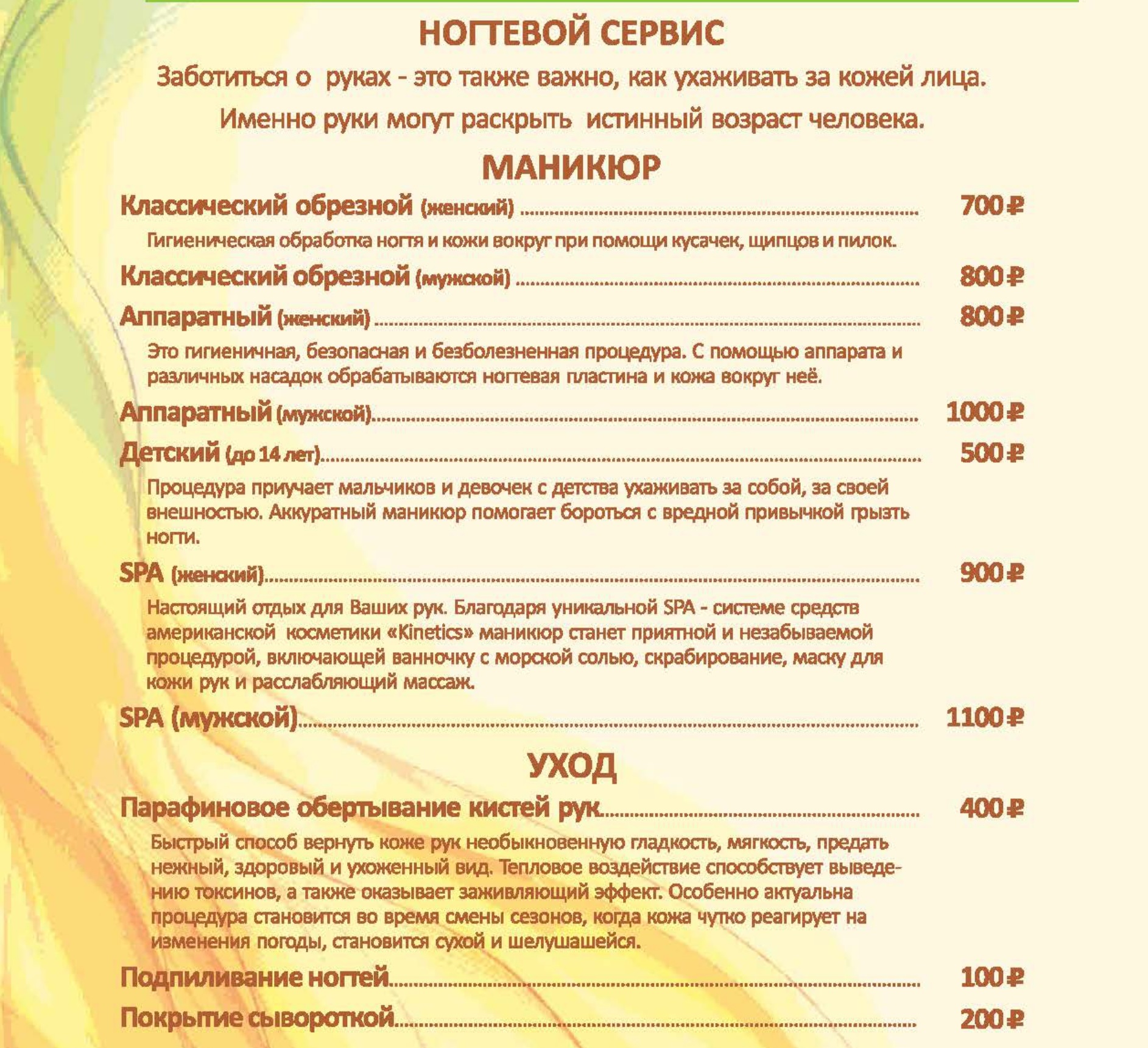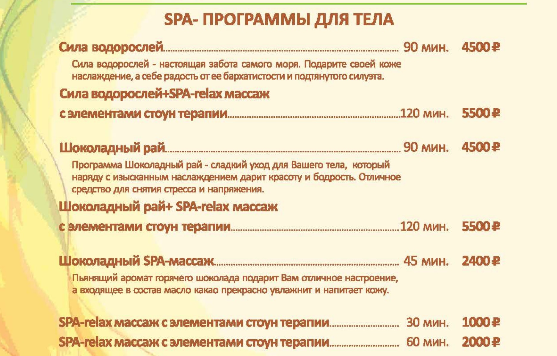 Цены на СПА услуги